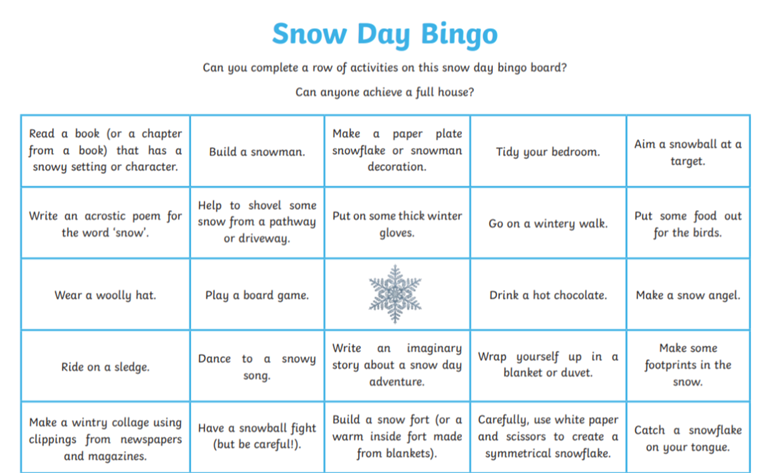 Significant snow fall in the UK is rare so spending time to enjoy this weather (safely) is valuable. If you make a snow sculpture, we would love to see these - pop a photo on Seesaw for us to enjoy.